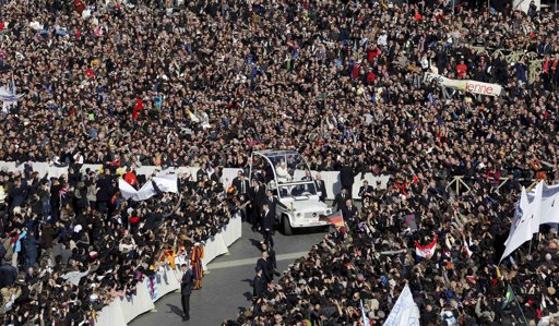 Thank you for coming in such large numbers to this last General Audience of my pontificate.