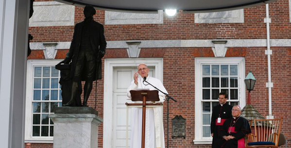 Of course, a focus on the human dignity of migrants across the board – with no regard whatsoever for US electoral cycles – has had a high place among Francis' core emphases from the very outset of his pontificate. Still, today's development wouldn't be complete without reminding how, during his East Coast tour last September, the Pope chose the nation's very birthplace, Philadelphia's Independence Hall – with Chaput at his side – to address the topic in depth on these shores (above), tying it in with the theme of religious liberty and saying among other things that....