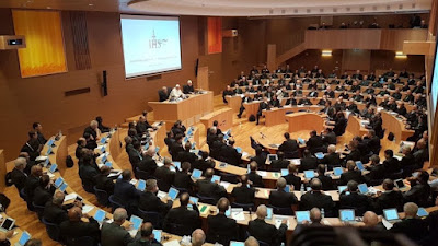 Back to this morning, with Francis speaking in Spanish – one of the Congregation's three official languages with English and French, yet just as much, the one he reserves for when he especially wants to lead "from the heart" – here's the official translation (emphases original) of the Pope's fluently Jesuitical hymn to the vision of Ignatius which has formed his own life and identity, spoken from the rostrum of the new Aula where the GC meets.
